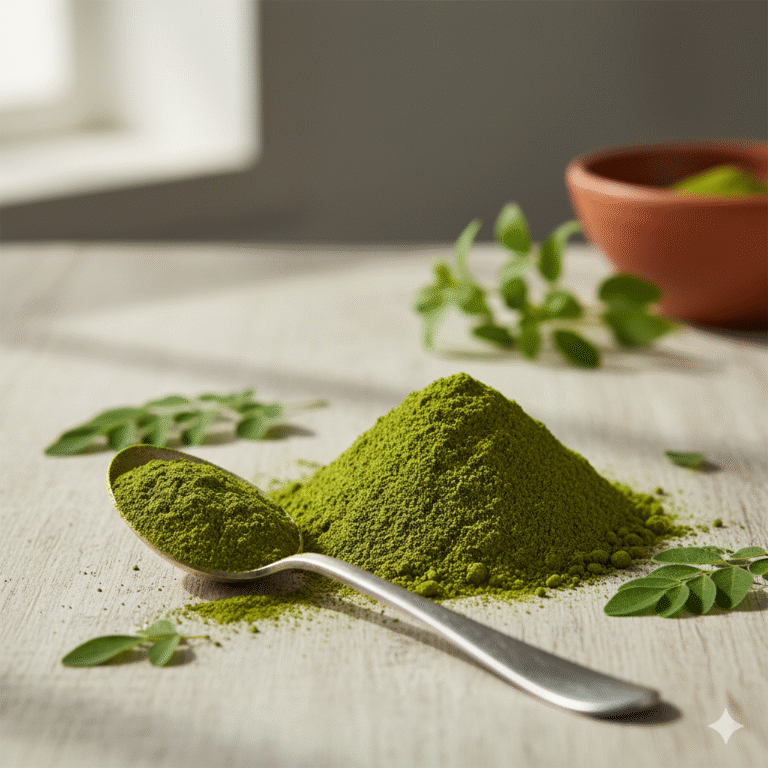 Mix 1 teaspoon of moringa leaf powder into warm water, smoothies, or soups. Regular use helps regulate blood sugar naturally.